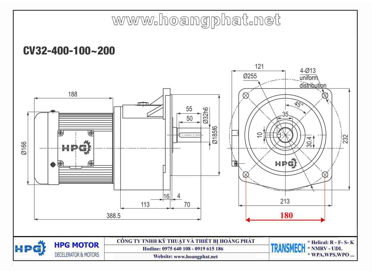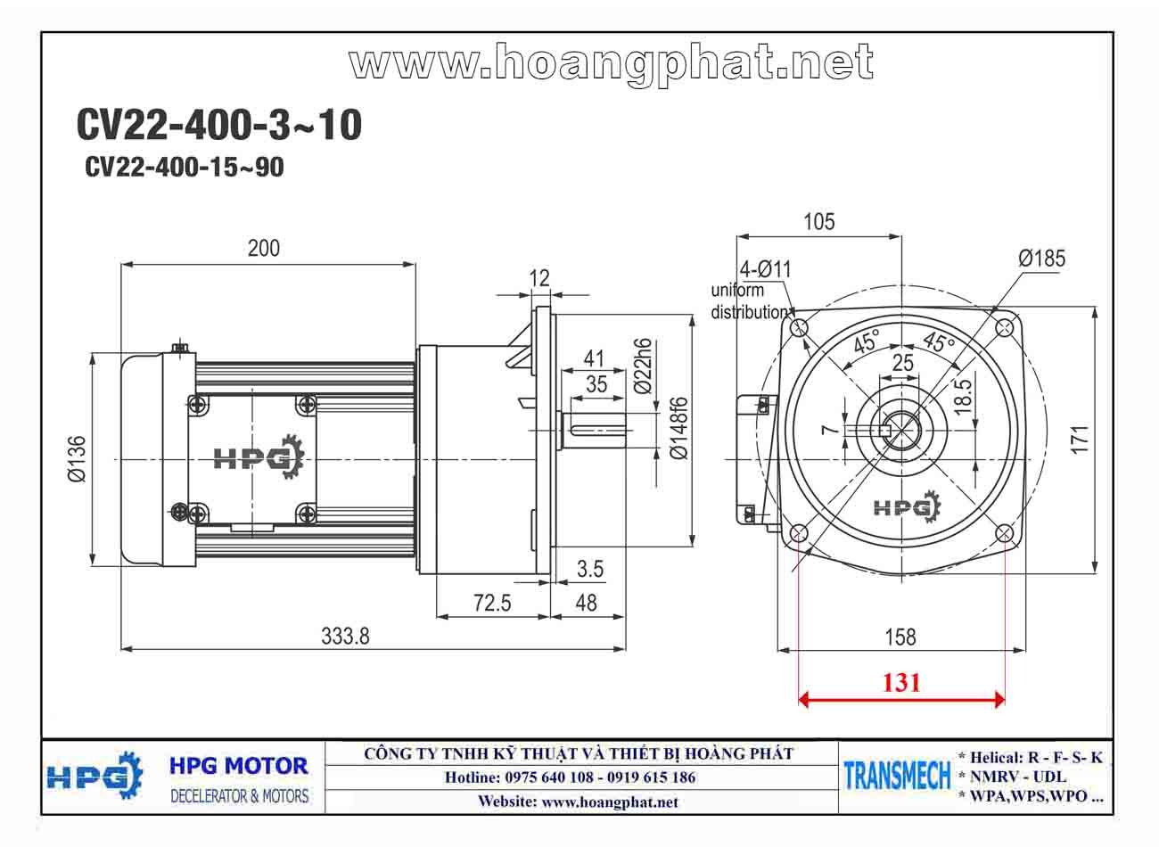 1. Động cơ giảm tốc HPG 0.2kw model: CV22-400-1/3~1/90