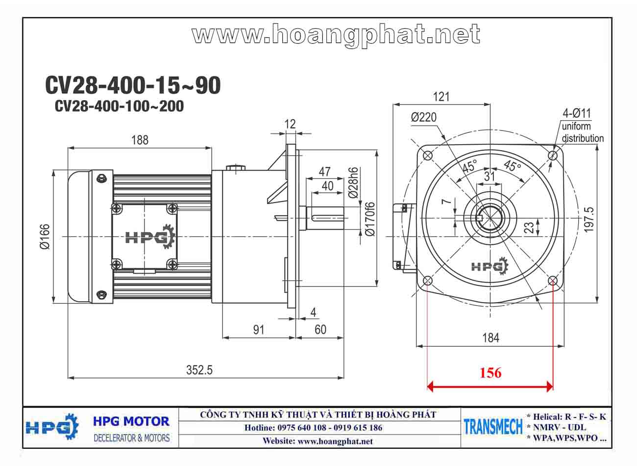 2. Động cơ giảm tốc HPG 0.2kw model: CV28-400-1/15~1/200