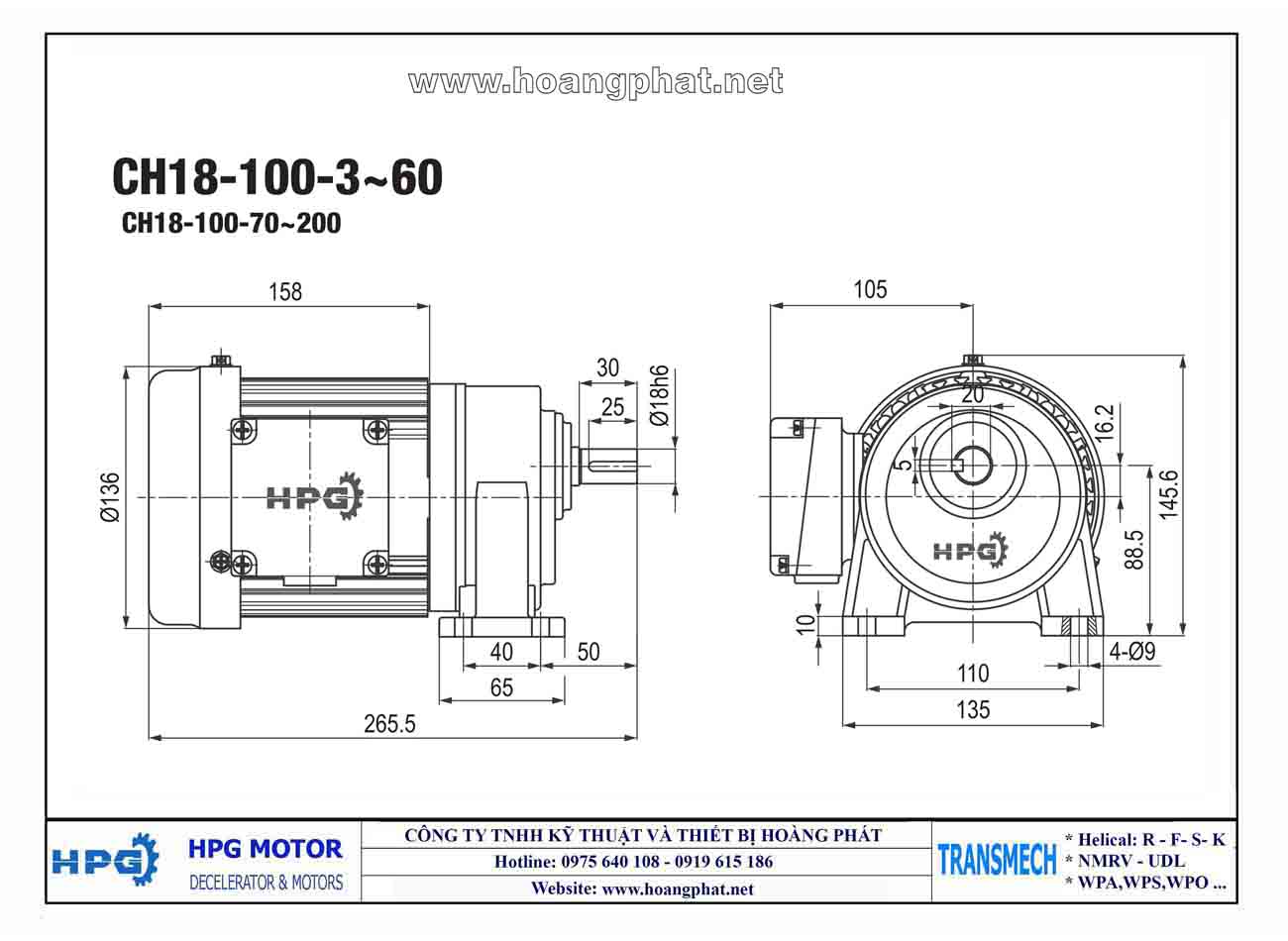1. Động cơ giảm tốc HPG 0.1kw model: CH18-100-1/3~1/200