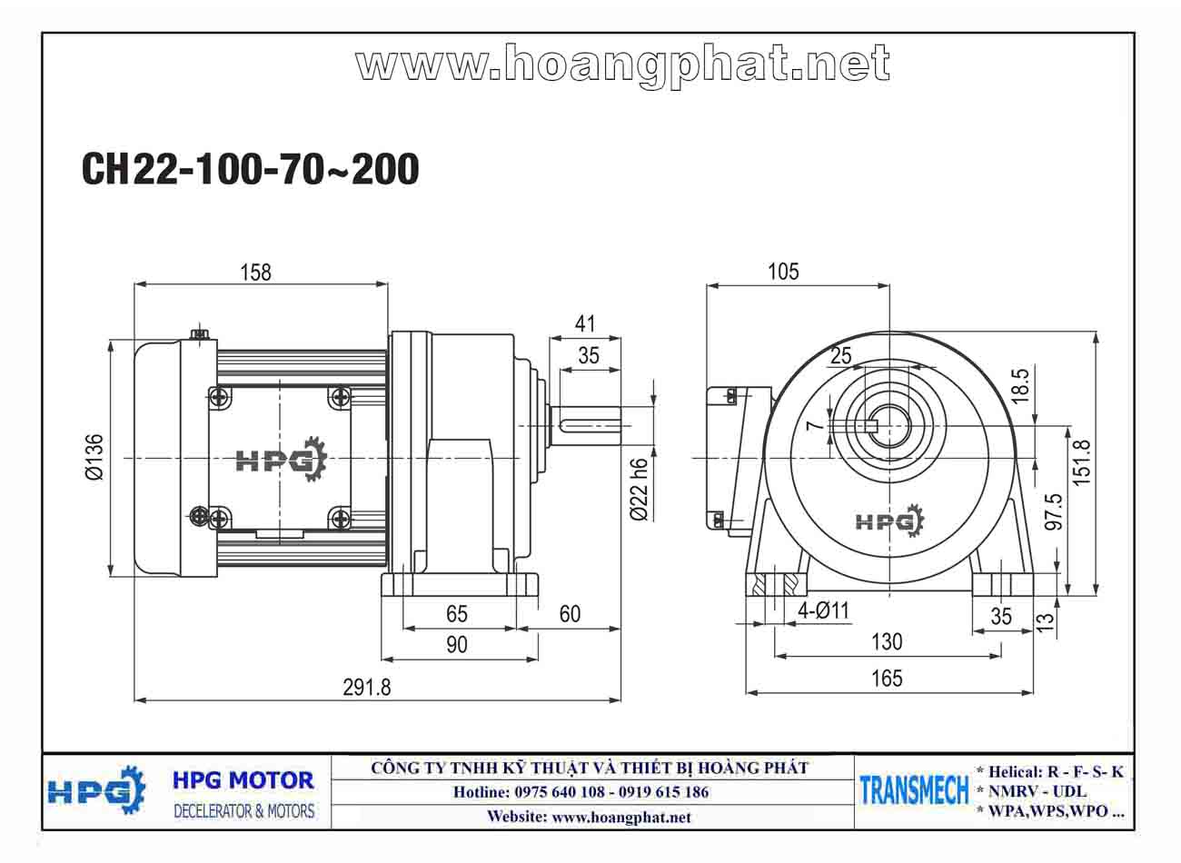 2. Động cơ giảm tốc HPG 0.1kw model: CH22-100-1/60~1/200