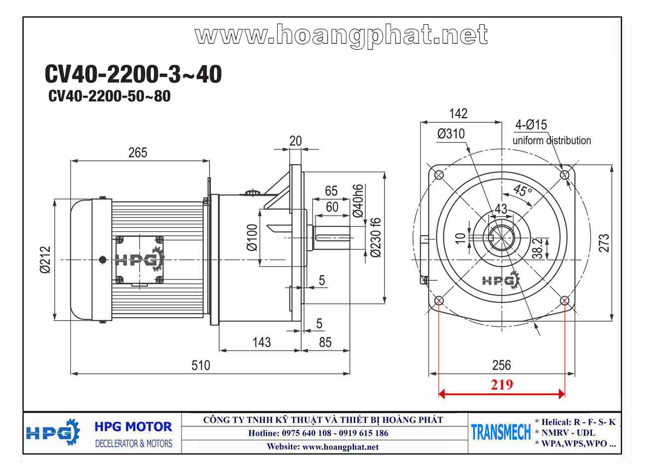 Bản vẽ - Động cơ giảm tốc HPG 2.2kw Model: CV40-2200
