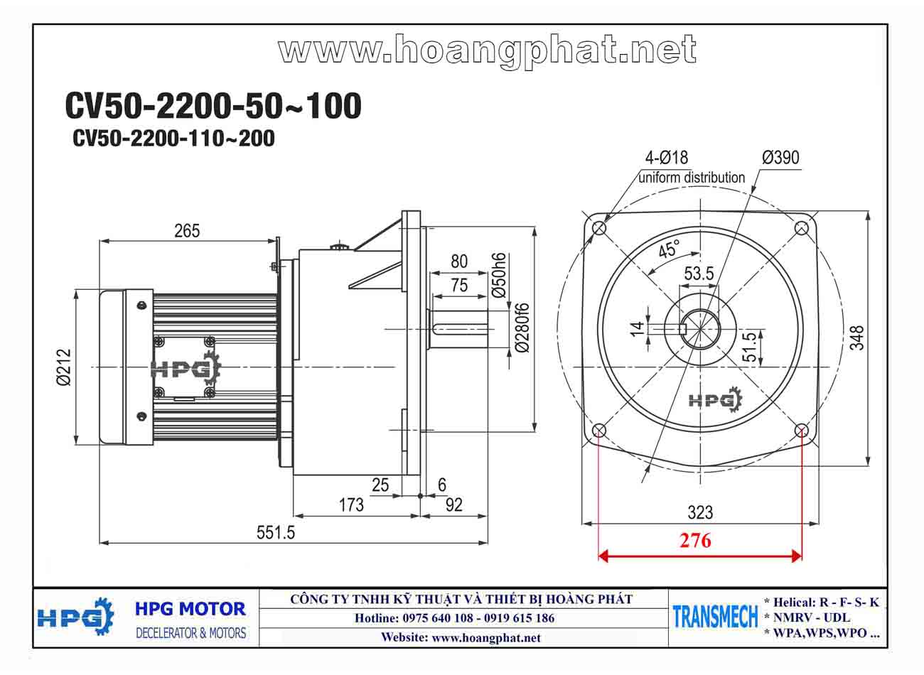 Bản vẽ - Động cơ giảm tốc HPG 2.2kw Model: CV50-2200