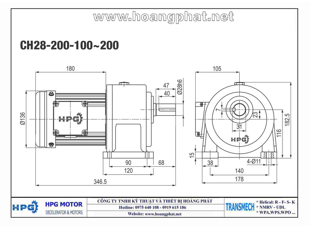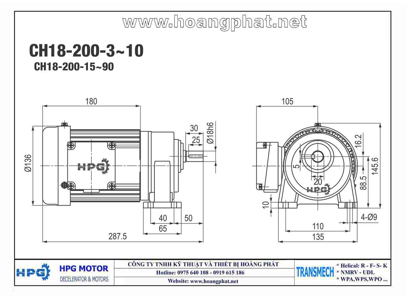 1. Động cơ giảm tốc HPG 0.2kw model: CH18-200-1/3~1/90