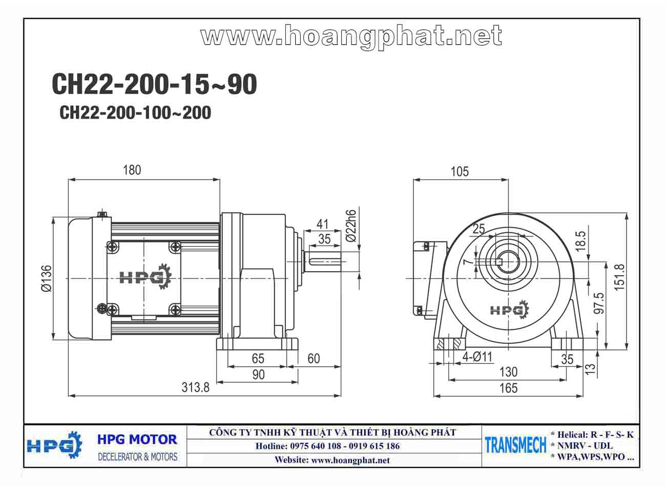 2. Động cơ giảm tốc HPG 0.2kw model: CH22-200-1/15~1/200