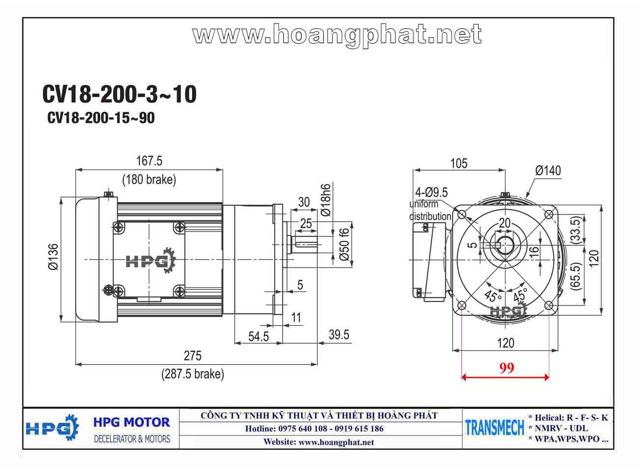 1. Động cơ giảm tốc HPG 0.2kw model: CV18-200-1/3~1/90