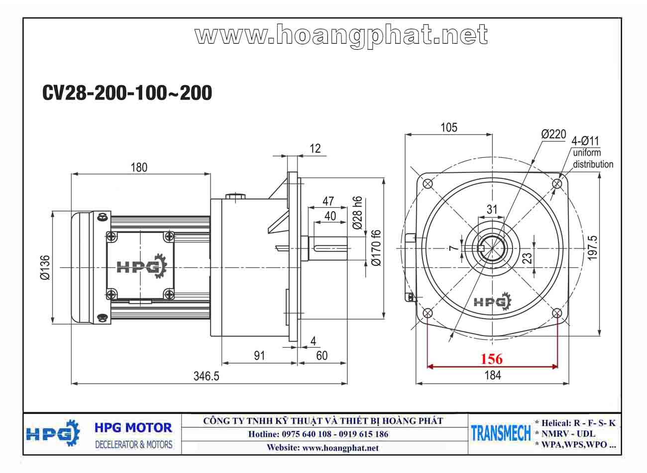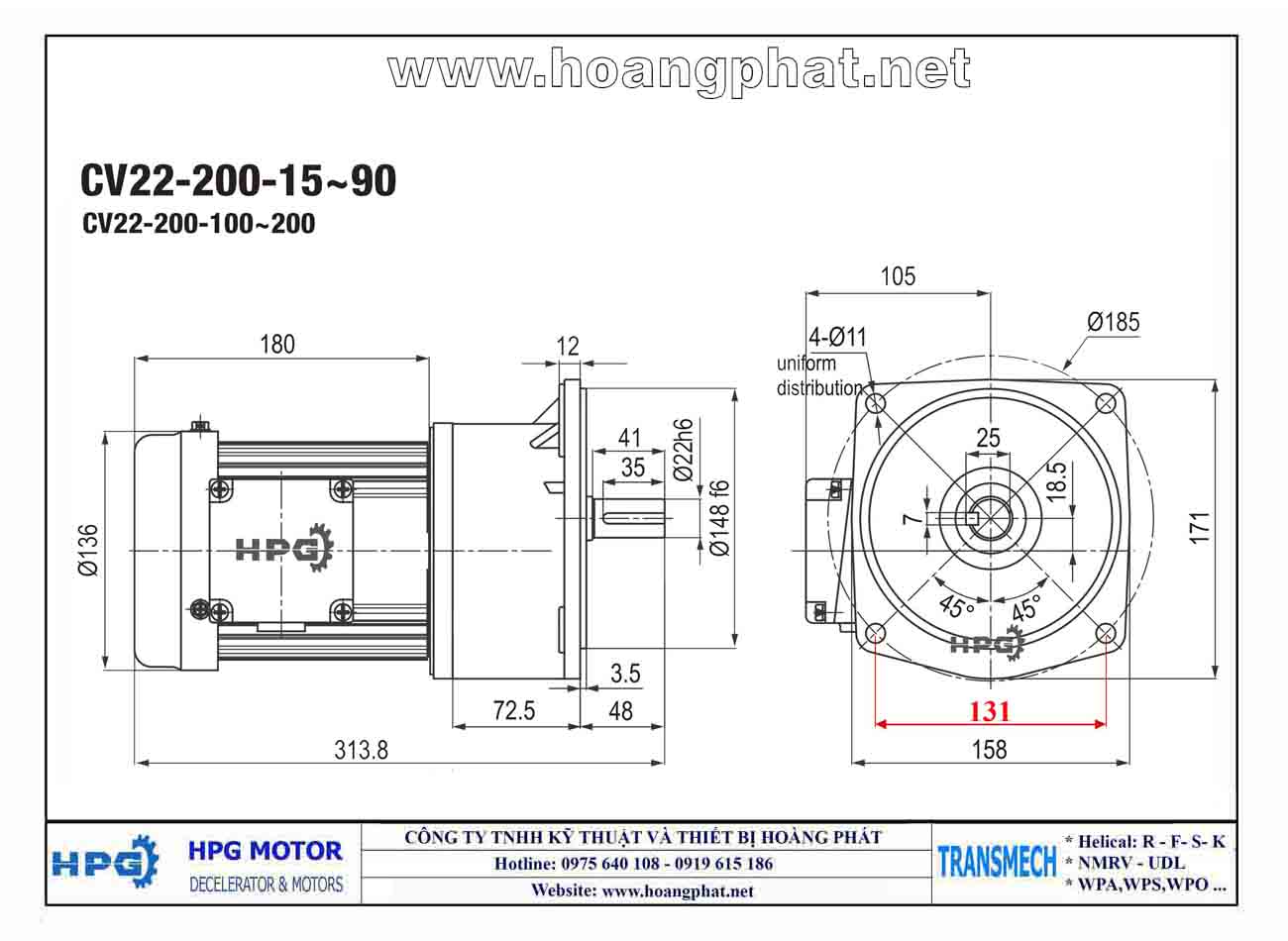 2. Động cơ giảm tốc HPG 0.2kw model: CV22-200-1/15~1/200