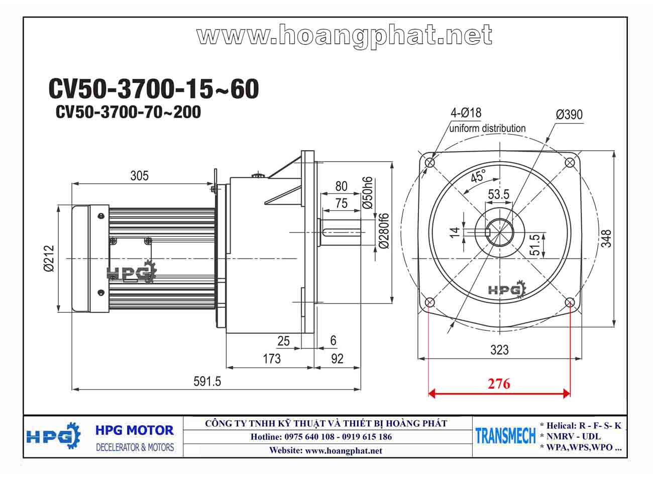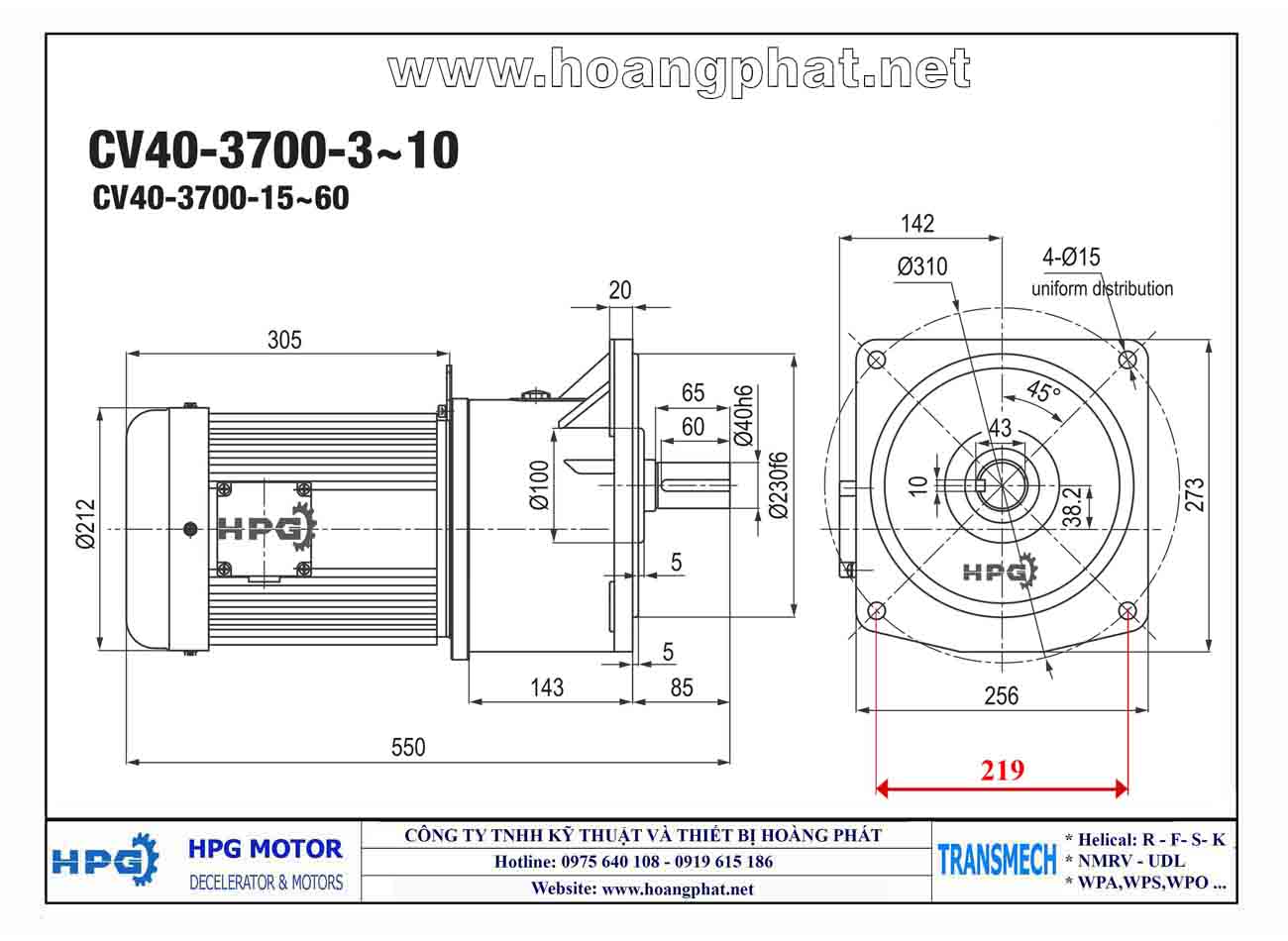 Thông số kỹ thuật Động cơ giảm tốc HPG 3.7KW CV: