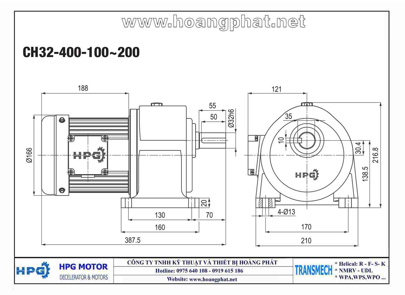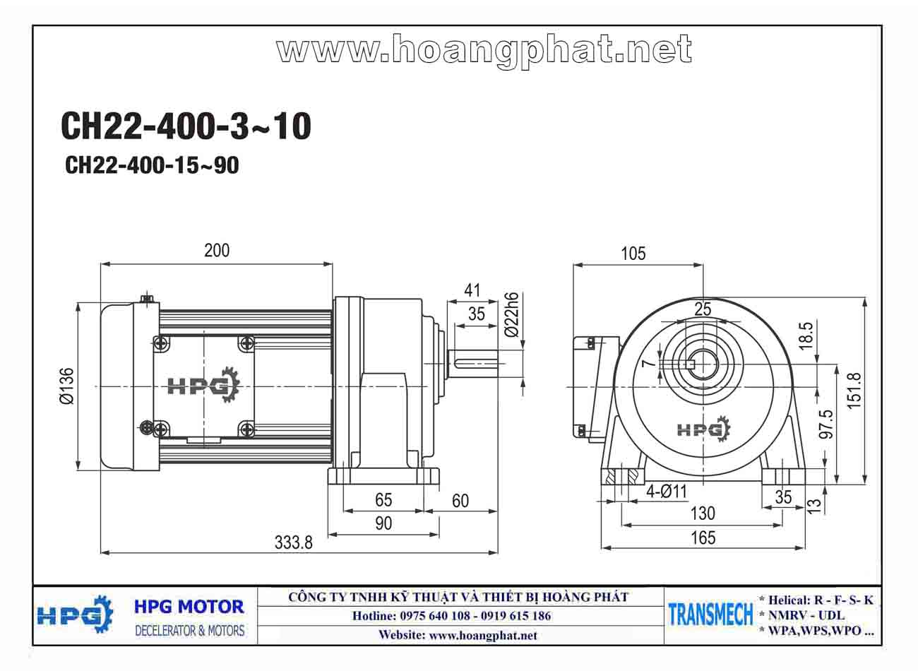 1. Động cơ giảm tốc HPG 0.4kw model: CH22-400-1/3~1/90