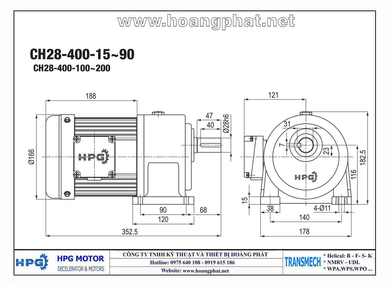 2. Động cơ giảm tốc HPG 0.4kw model: CH28-400-1/15~1/200