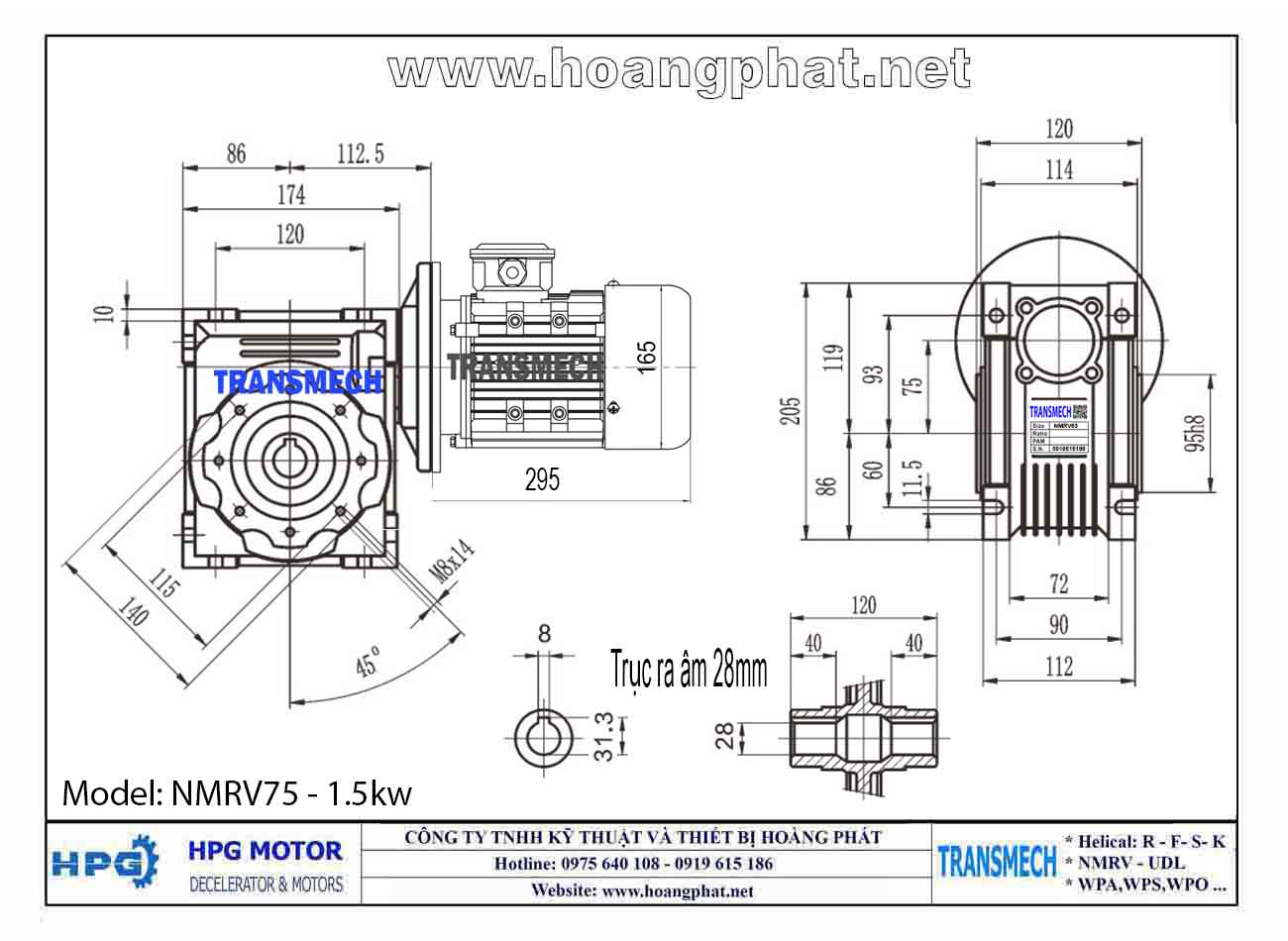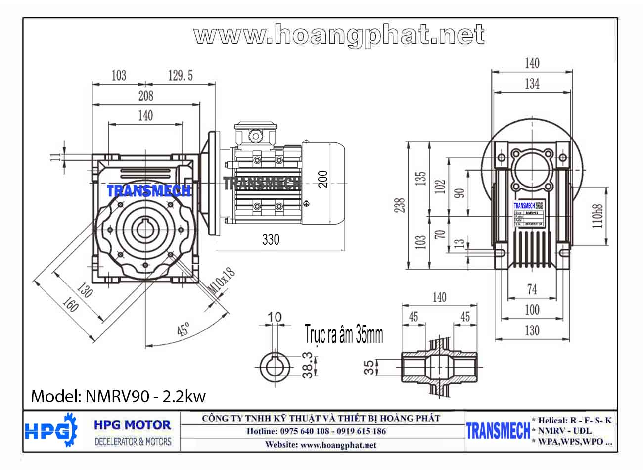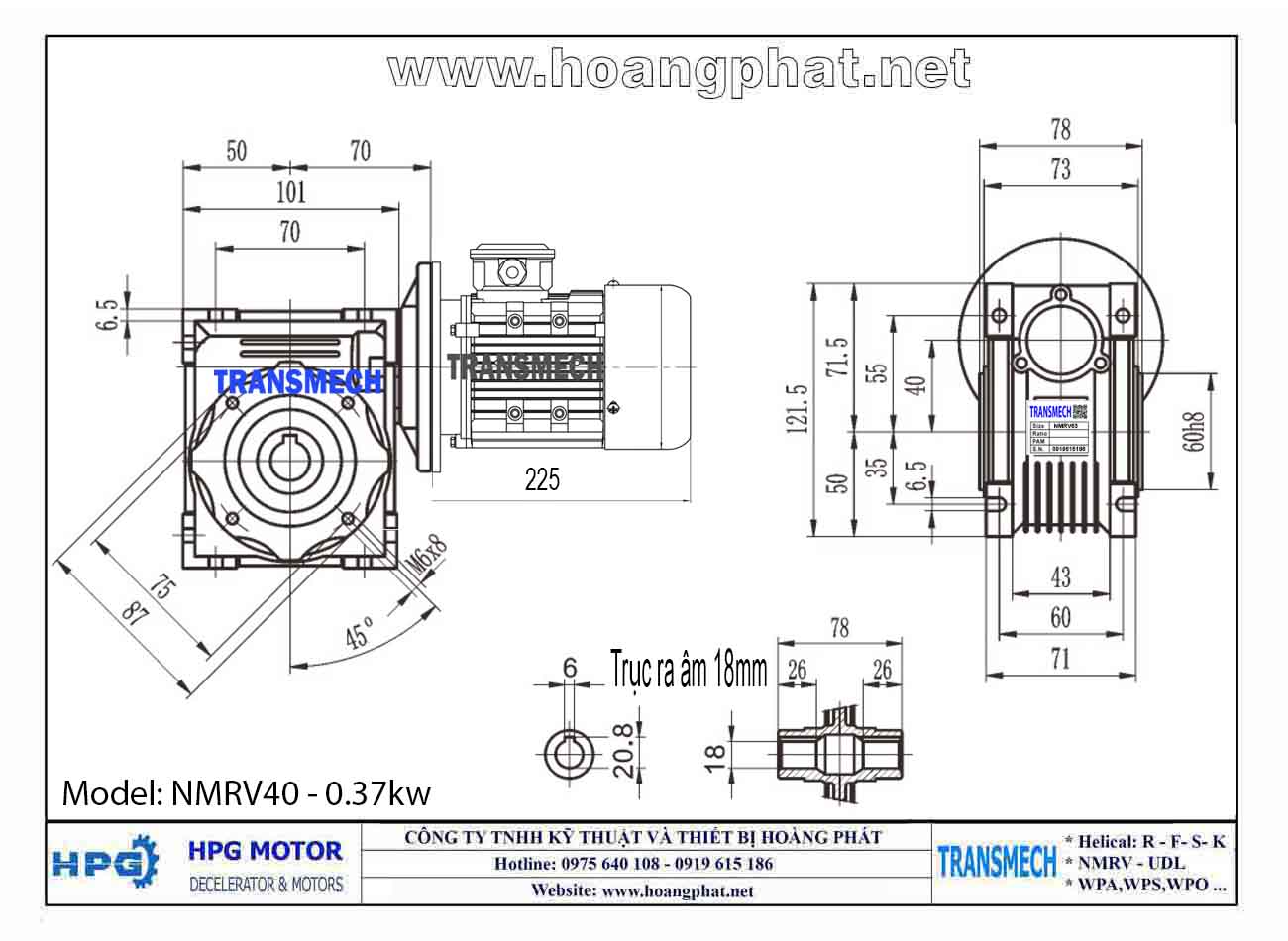 Dưới đây là một số thông số kỹ thuật quan trọng của động cơ giảm tốc NMRV Transmech: